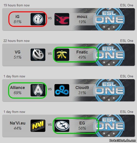 Ну тут думаю очевидно, фнатики последнее время показывают очень хорошую игру. История встреч данных команд FNATIC [2 - 1] VG